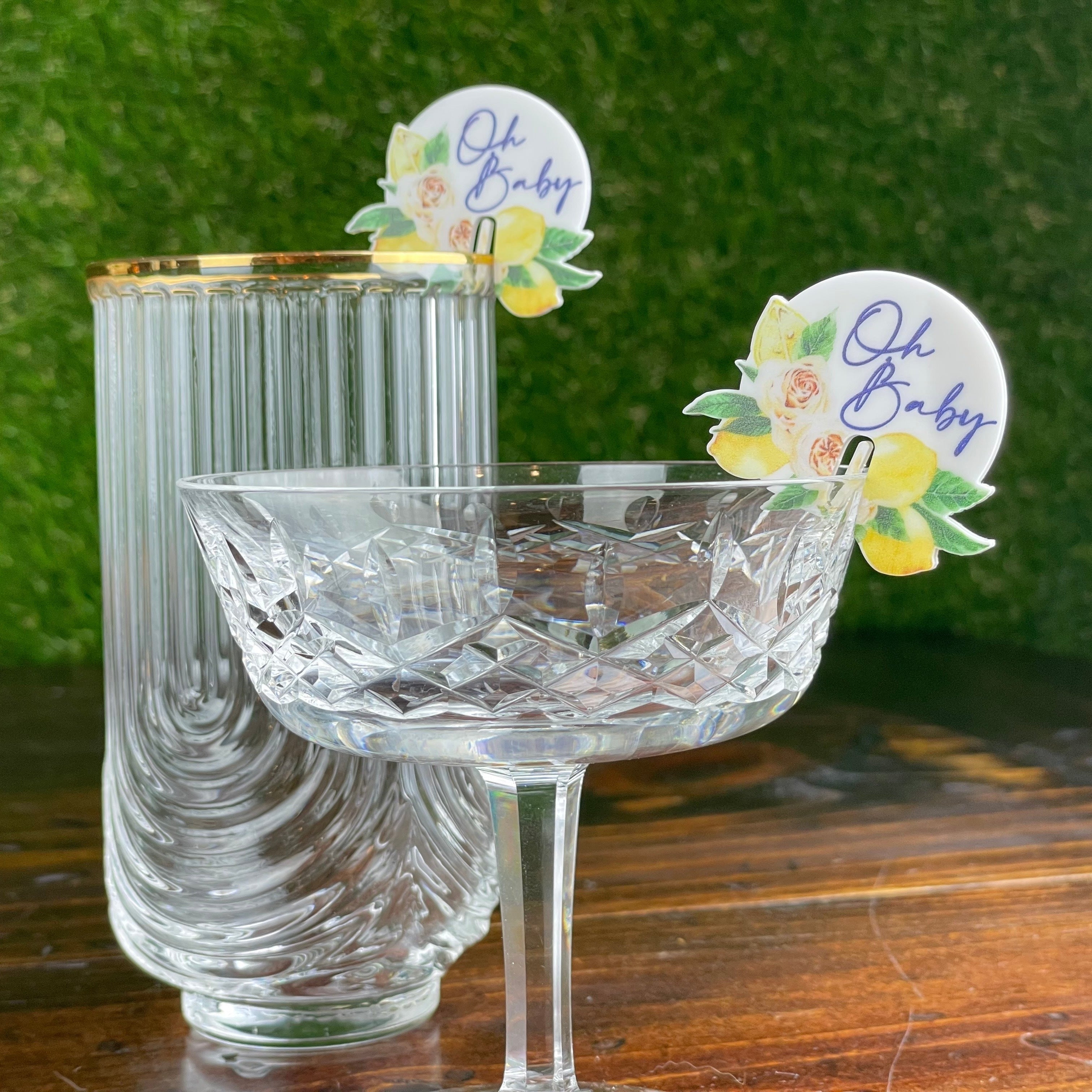 Our tags have been designed to fit the glass with a light yet snug fit to keep them upright and from easily falling off!